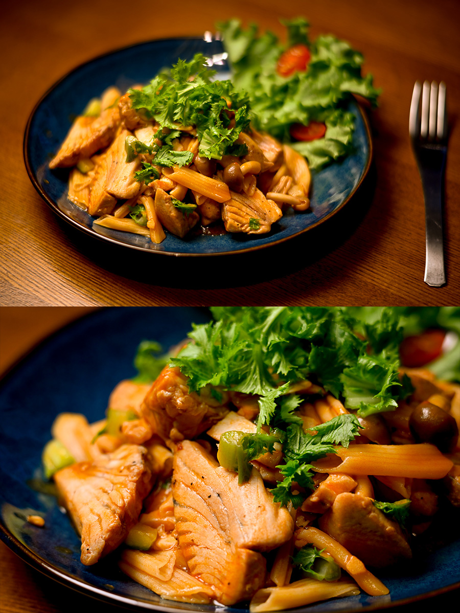 夜はマグロのアラのペンネアラビアータ。ちょっと思ったよりは薄味になっちまったね。やっぱりトマトソースは濃くないと辛さと合わない。