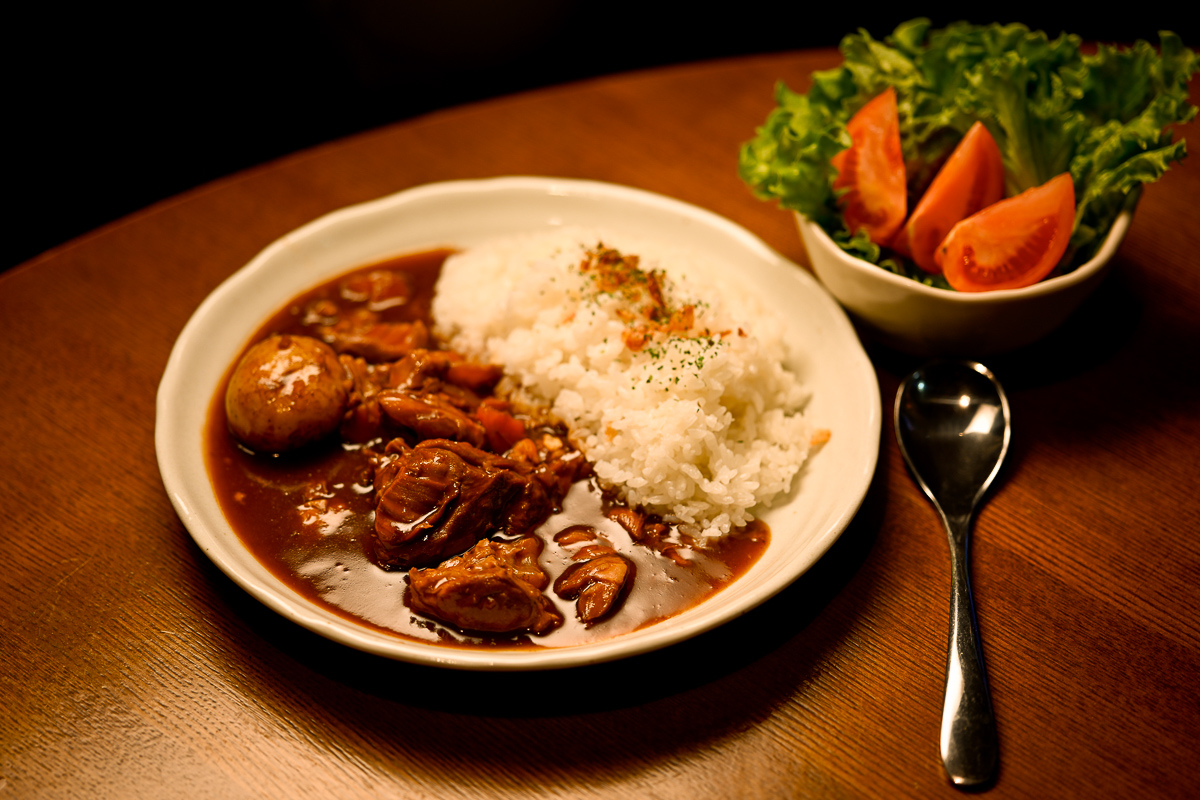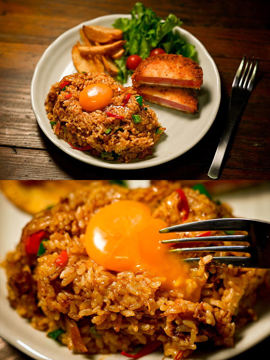 夜は夜中にドライカレーとハムカツ。