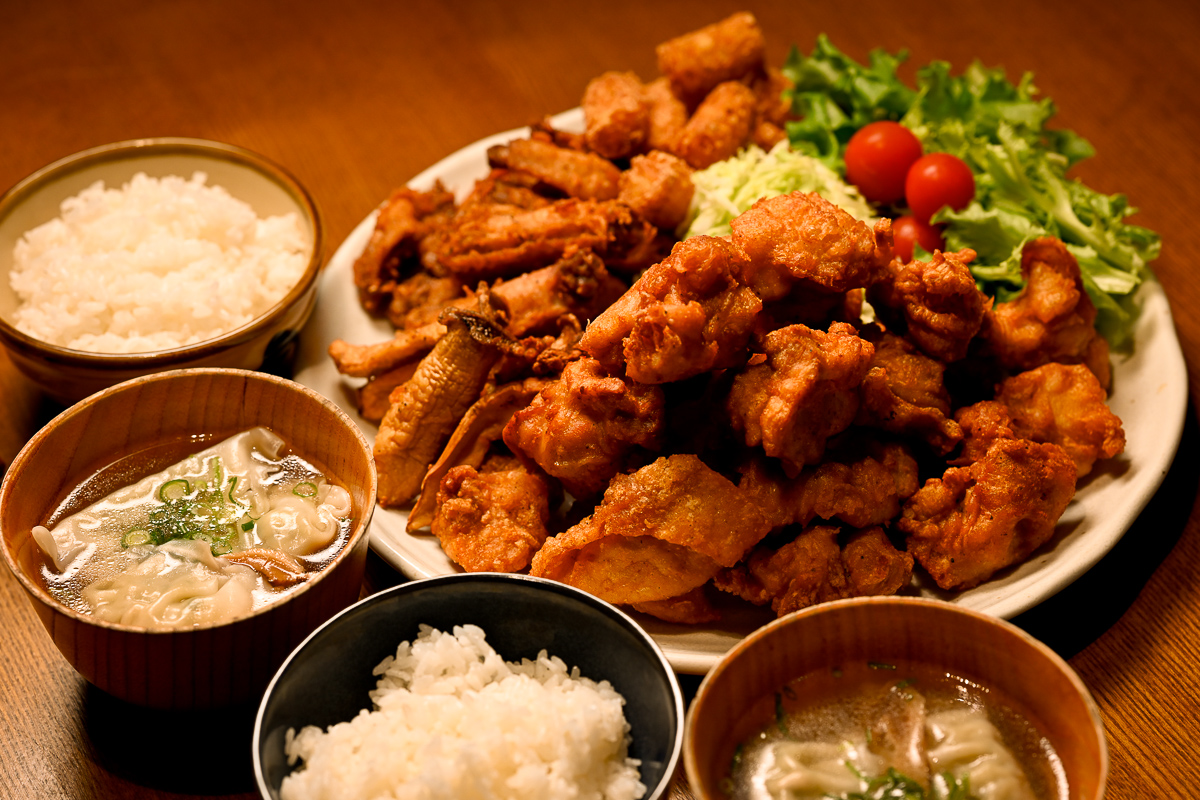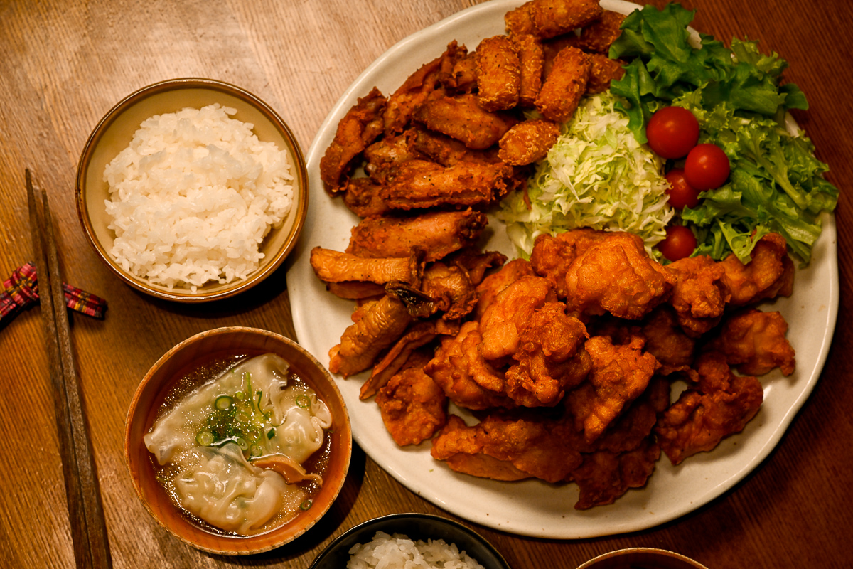 とりあえずいろいろと対応できるようには用意しといたんで今日はもりもりから揚げw ももと手羽中とエリンギにミニハッシュを揚げて、水餃子のスープ。