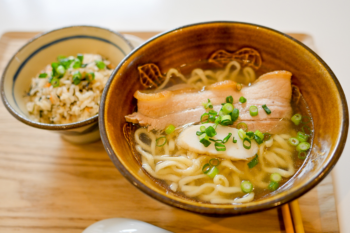 ここはそば屋さんが併設してて、とは言えいつも混んでるんで行ってなかったんだけどせっかくマイサンもいることだしってんで沖縄そば食べる。なかなか好みの加水率の高い生麺。出汁も結構好み。みよ家を思い起こさせるそばだね。