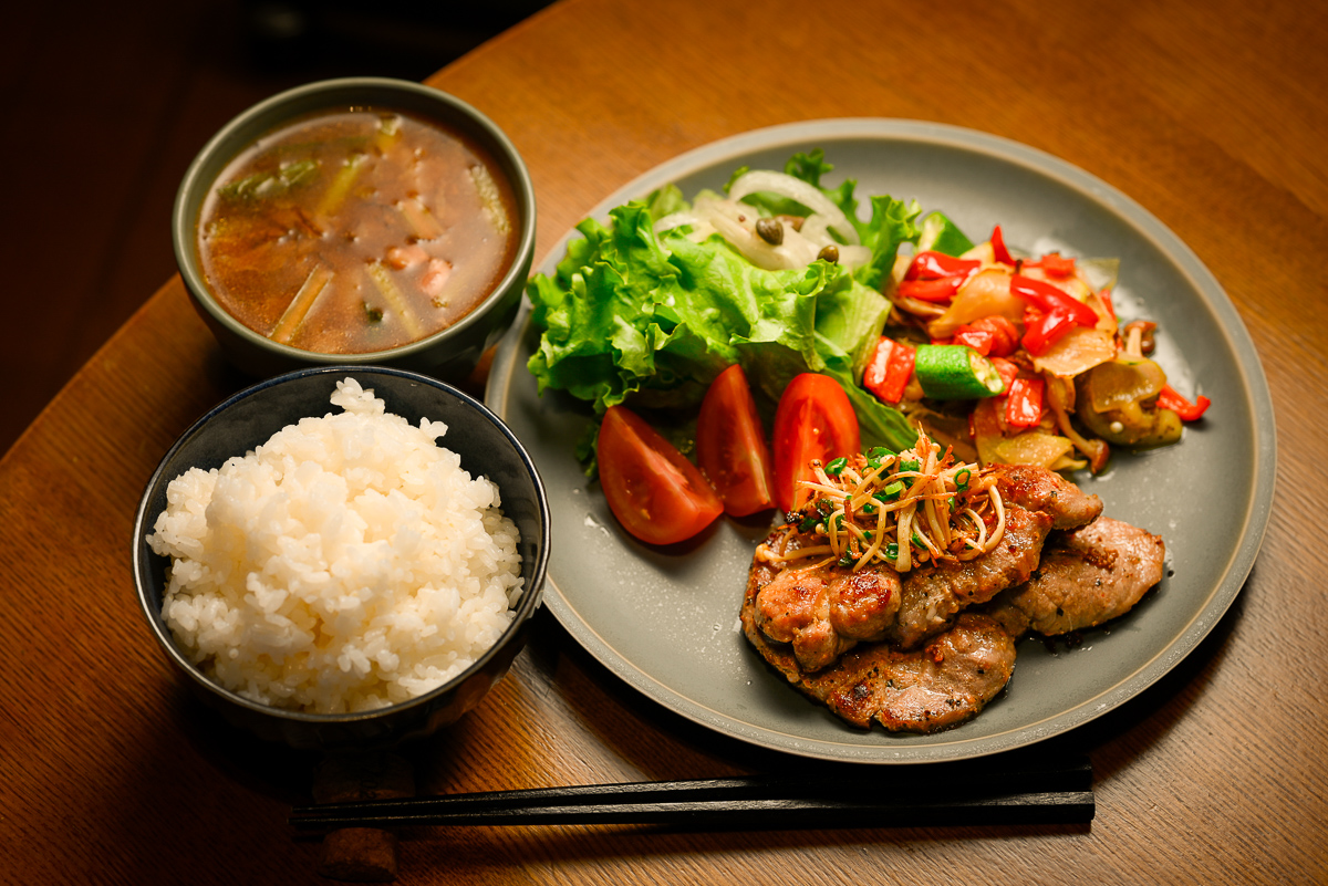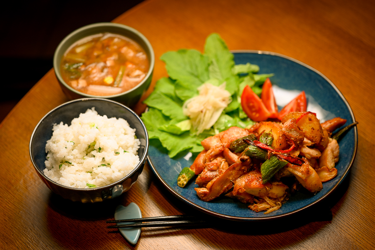 夜はポークソテー。レモンスパイスで焼いたやつだけど結構脂がフライパンに残るんで刻んだエノキで回収w 肉に乗っけた。全体量は結構モリモリ感あるけど半分以上は野菜なんだよねw