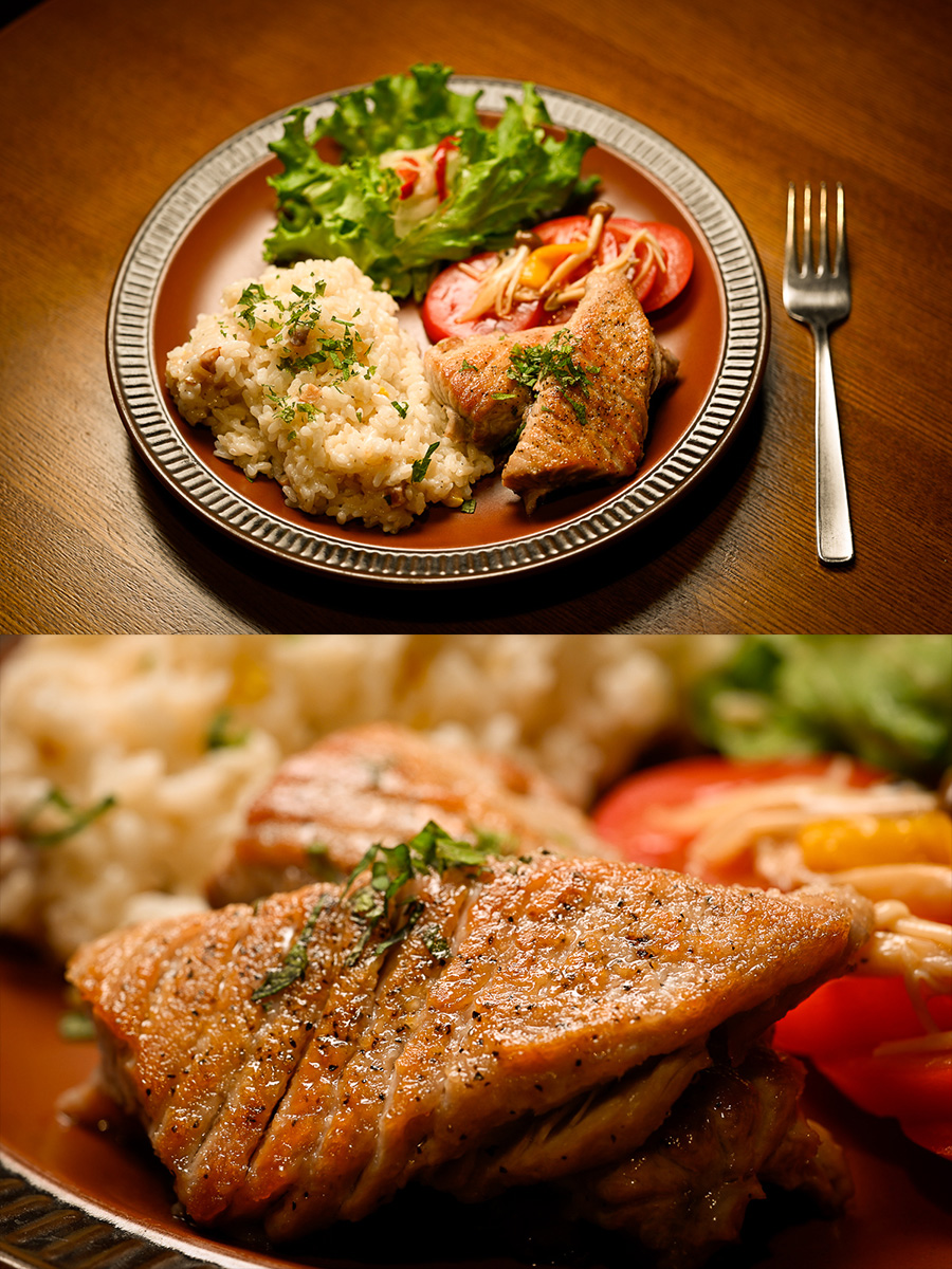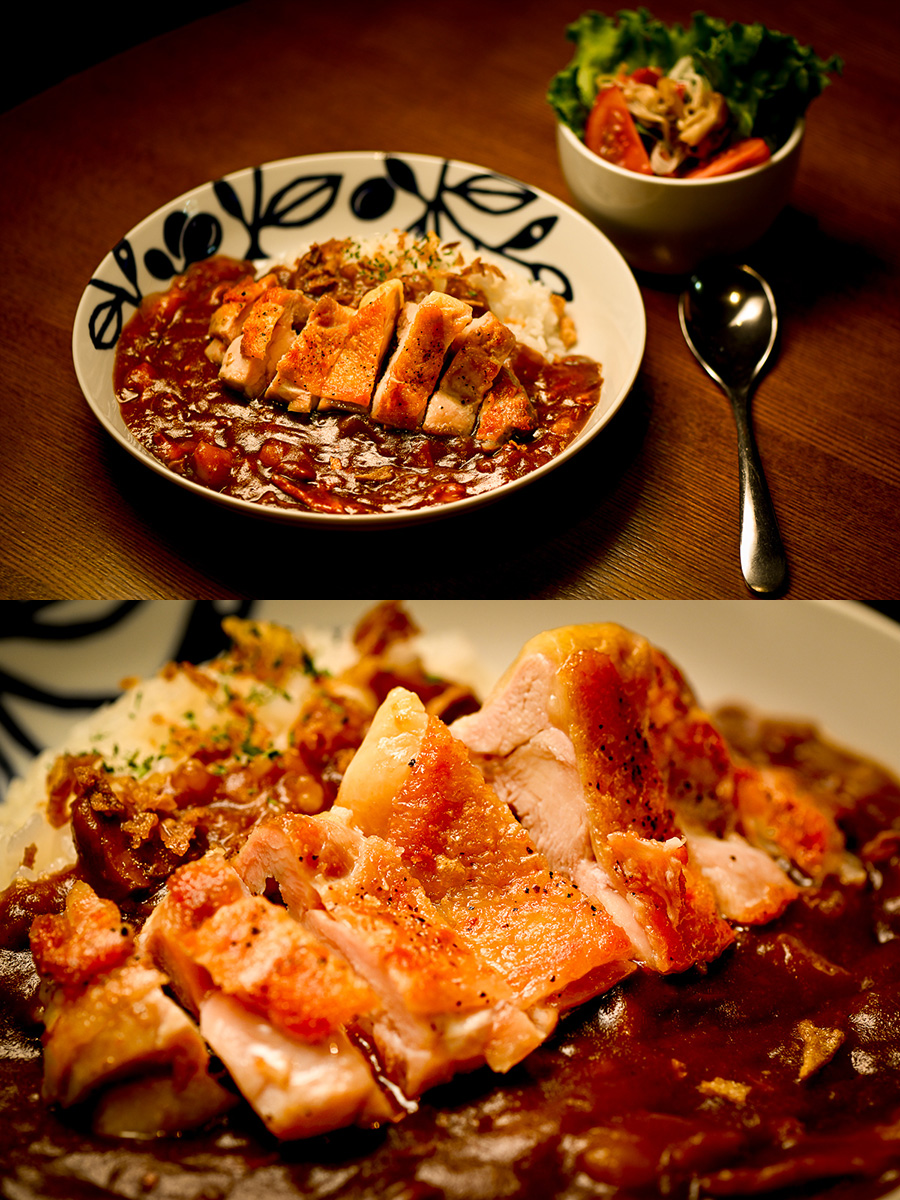 今日はダブルチキンカレー。鶏ももの半分を圧力鍋で煮込んで煮溶かしちゃって、残った鶏ももをカリッと焼いてカレーに乗っけた。とろとろとパリパリのダブル食感。