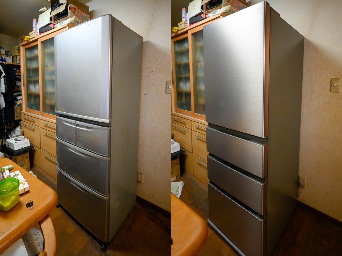 20250808181107.jpg 昨日から一応冷蔵室には4.5㎏のアイスブロックをぶち込み、基本的には0度程度な冷凍室なんかに傷みやすいものは放り込み何とか維持。昼後から周りを片付け、中身をクーラーボックスやバッグに詰め込んで準備万端。新冷蔵庫来たぜ。なんやかんやで手慣れた配達のおにぃちゃんたちは回収、納品は10分ー20分程度でちゃっちゃと終了。その後空運転2時間ほど。冷え始めたころ合いに、イロイロきちんと整理したいんだけどまぁ取り急ぎぶちこんだよ。