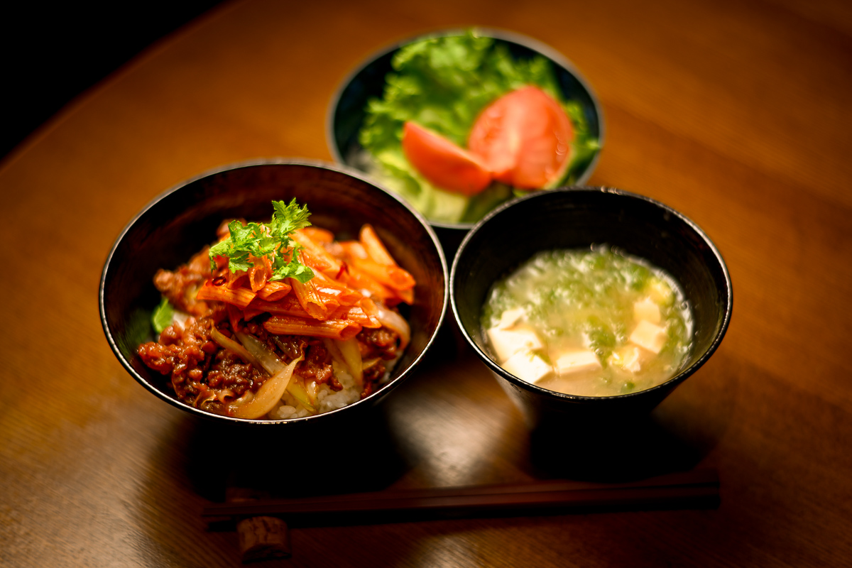 夜は焼き牛丼のペンネアラビアータのせ。上にわさび菜をパラパラ。新物のアオサが出てたんで、この時期だけだしシンプルにみそ汁に入れた。