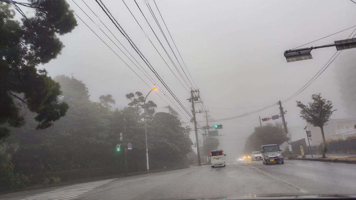 もう湿気がすごいよなぁ…とか思ってたら、朝から結構な霧…。首里から南の方にはほとんど出ないんだけどね西原との境は湿気がすごいんだよなぁ。