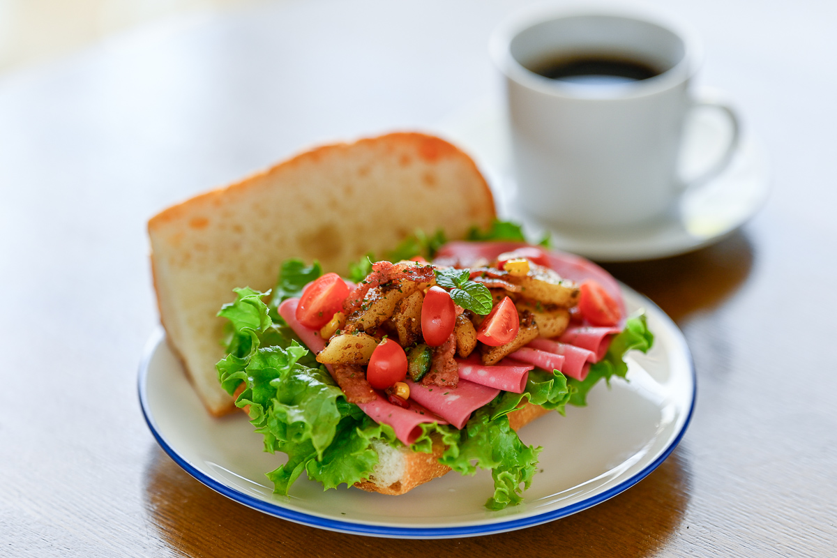 昼はビアソーにじゃがいもとベーコンに野菜をちょろっとマヨネーズで炒めたものを乗せてみた。岡母子はクラッカーとかちょこちょこ。