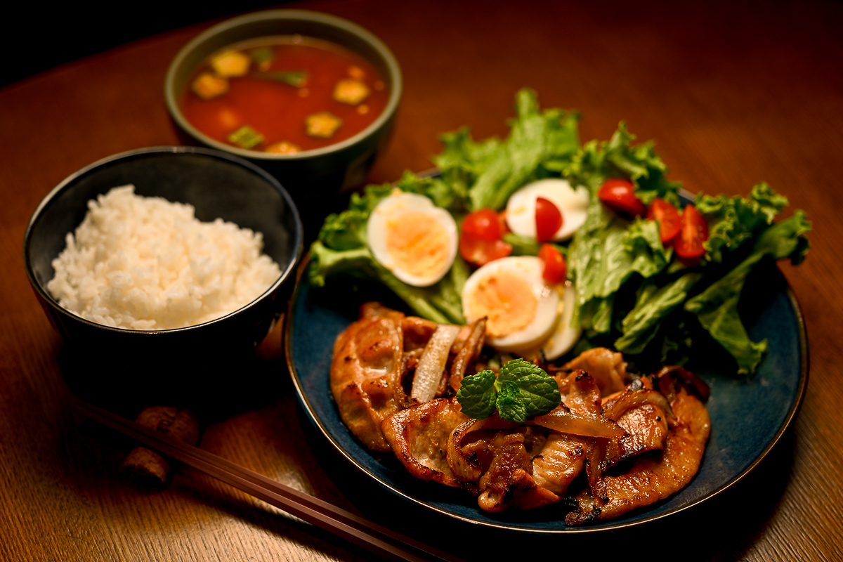 ってわけで晩御飯はひとりメシ。豚ロースのガリバタ醤油。昨日、岡母子がたくさんのゆで卵とか野菜とかもらってきちゃったんでサラダにもゆで卵w
