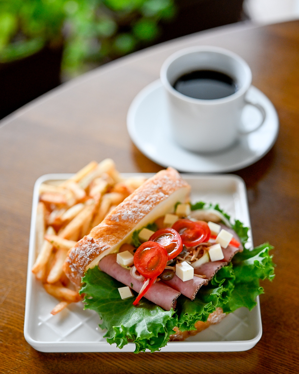 昼はパストラミとマリネのサンドにポテト(シューストリング)添え。